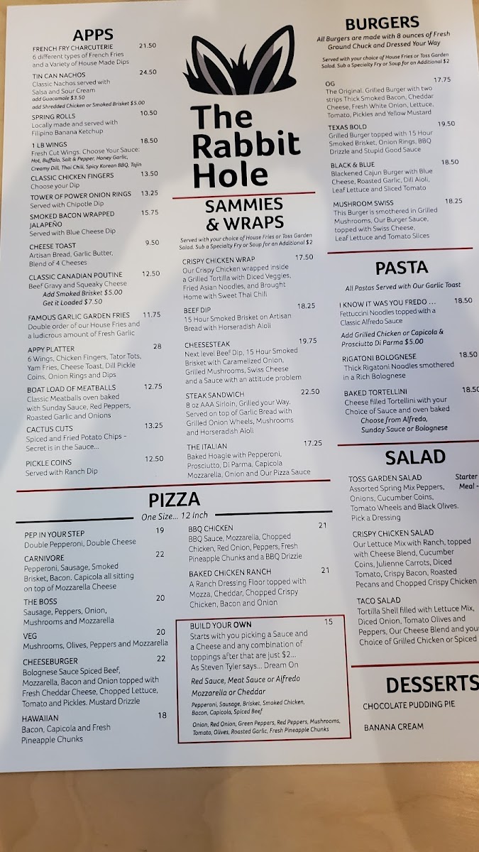 Welcome to The Rabbit Hole, a vibrant dining destination located at 2404 Melrose Ave, Saskatoon. This inviting sports bar and restaurant offers a diverse menu that promises to delight food lovers from all walks of life.